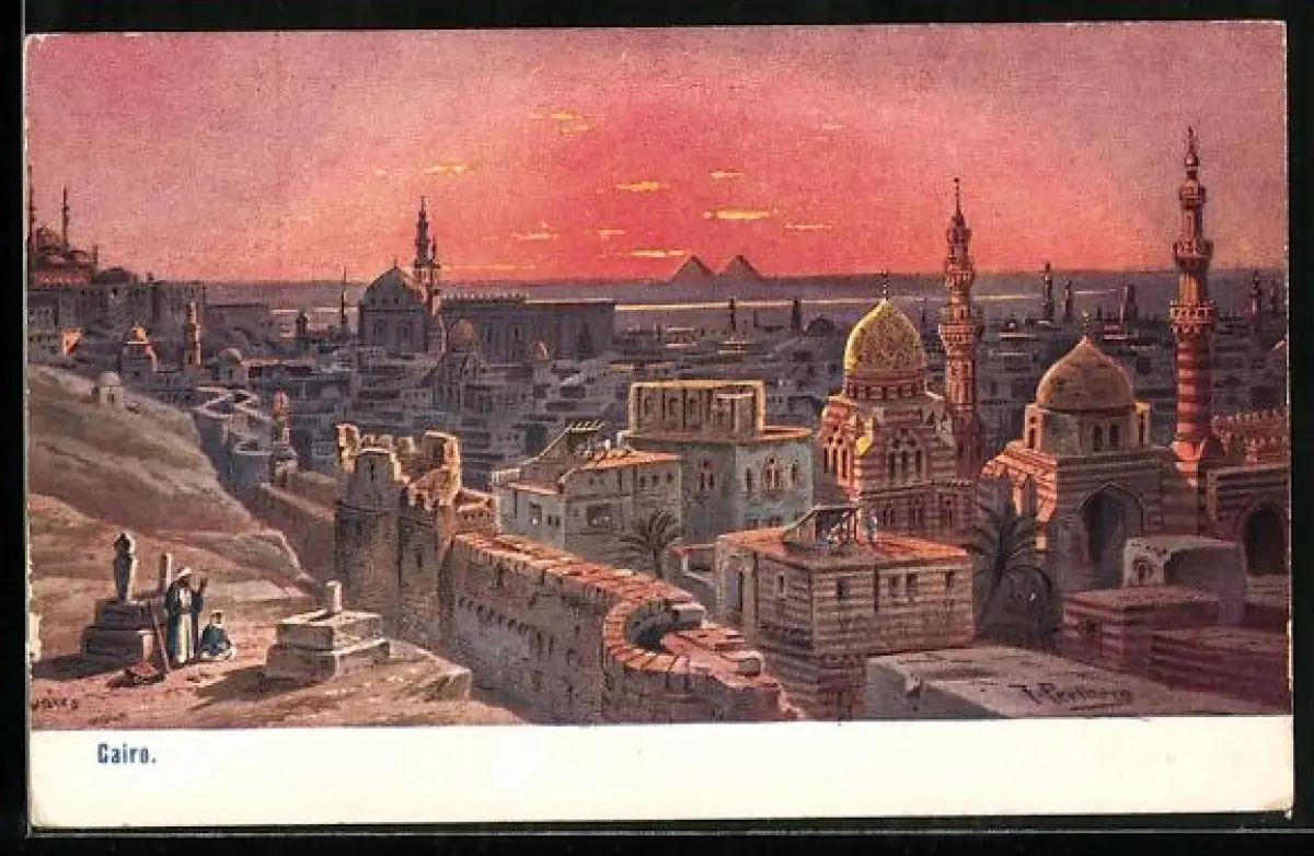 Künstler-AK F.Perlberg: Kairo im Sonnenuntergang