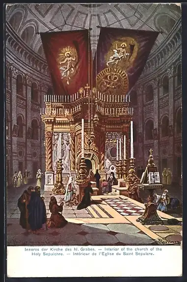 Künstler-AK F.Perlberg: Palästina, Im Innern der Kirche des hl. Grabes
