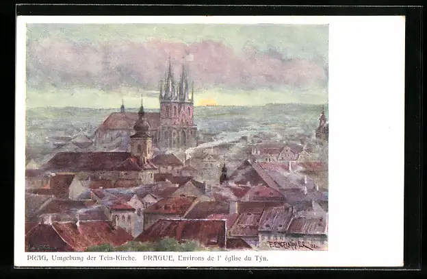Künstler-AK Ferdinand Engelmüller: Praha, Okolí Tynského chrámu