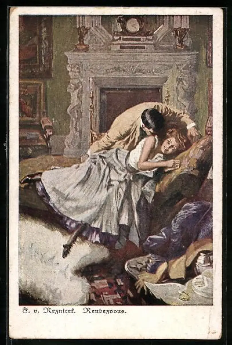 Künstler-AK Ferdinand von Reznicek: Liebhaber beim Rendezvous mit seiner Geliebten