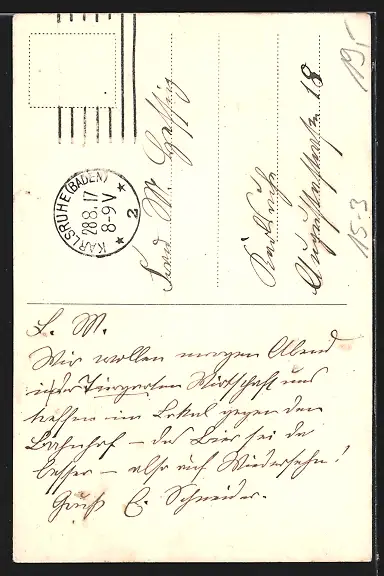 alte Ansichtskarte, gelaufen 1917, Briefmarke entfernt, Stempelspur, guter Zustand