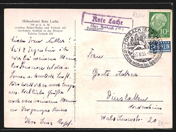 gelaufen 1955, Eckknick oben li., Bugspur unten re., guter Zustand