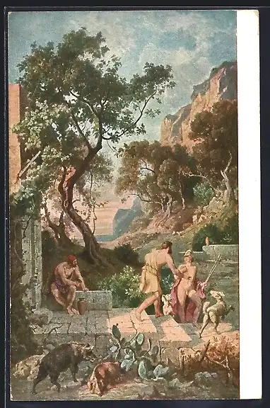 Künstler-AK Fr. Prellers Odyssee-Landschaften, VIa, Odysseus erblickt Telemachos