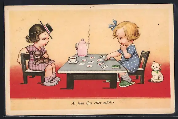 Künstler-AK Fräulein mit Hund bei einer Kartenlegerin