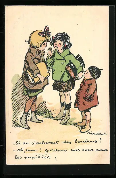 Künstler-AK Francisque Poulbot: Zwei Mädchen bei einer Unterhaltung