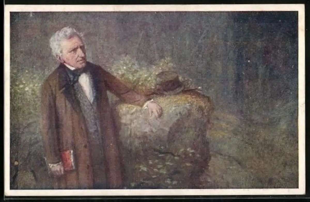Künstler-AK Franz Grillparzer lehnt an einem Felsen