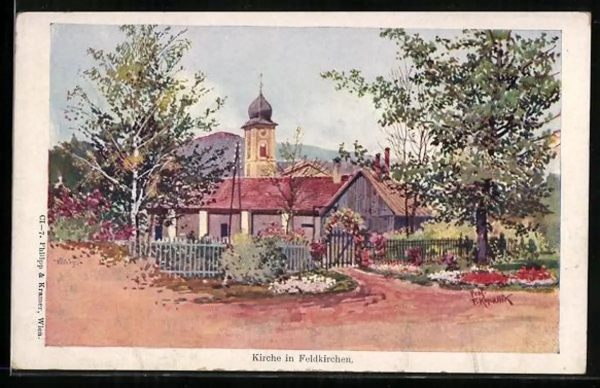 Künstler-AK Franz Kopallik: Feldkirchen, Ortspartie mit Kirche