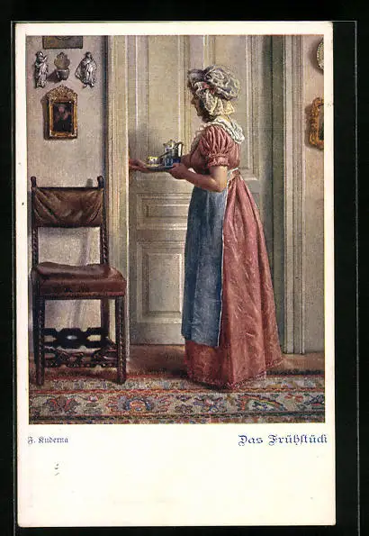 Künstler-AK Franz Kuderna, Deutscher Schulverein Nr. 854: Frau bringt ein Tablett mit Frühstück