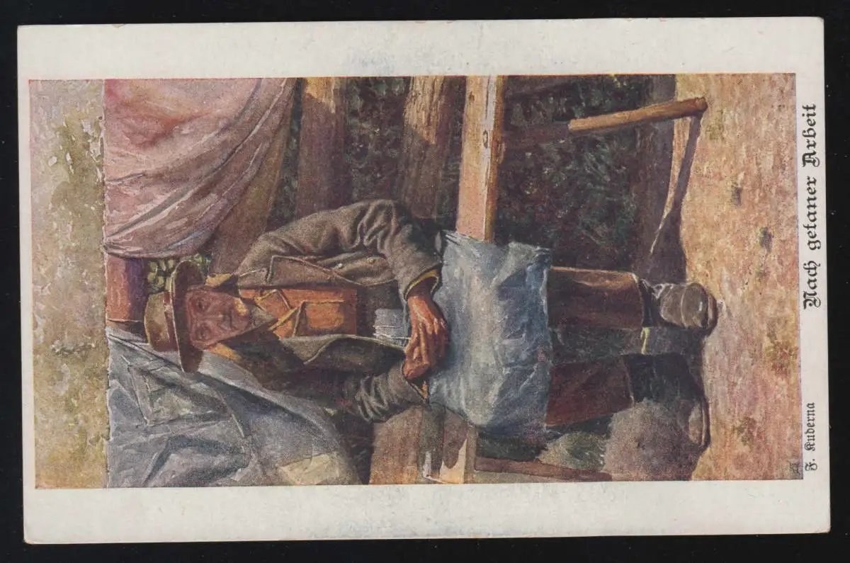Künstler-AK Franz Kuderna: Nach getaner Arbeit, ungebraucht, um 1930