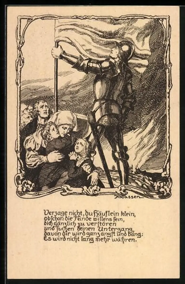 Künstler-AK Franz Stassen: Flaggenträger in Ritterrüstung