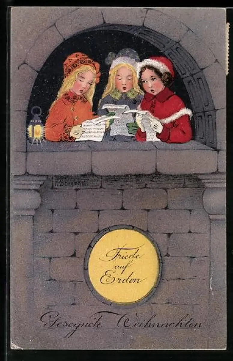 Künstler-AK Franziska Schenkel: Kinder singen Weihnachtslieder, Weihnachtsgruss