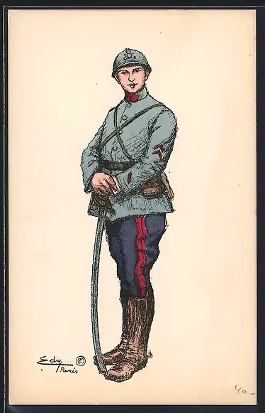 Künstler-AK Französischer Soldat in Uniform mit Säbel