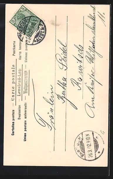 alte Ansichtskarte, gelaufen 1902, Stempelspur, guter Zustand