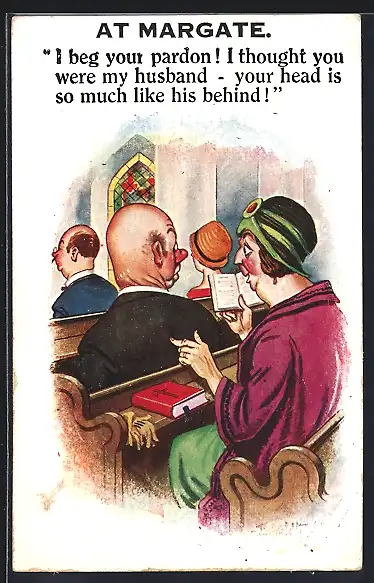 Künstler-AK Frau verwechselt einen Mann in der Kirche