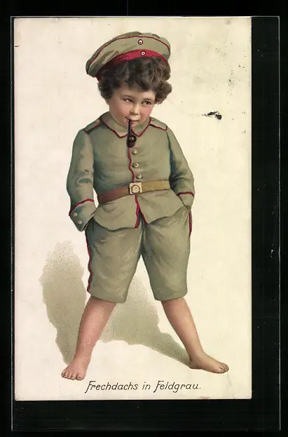 Künstler-AK Frechdachs in Feldgrau, Kinder Kriegspropaganda