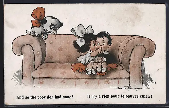 Künstler-AK Fred Spurgin: Kinder mit Hund auf einem Sofa