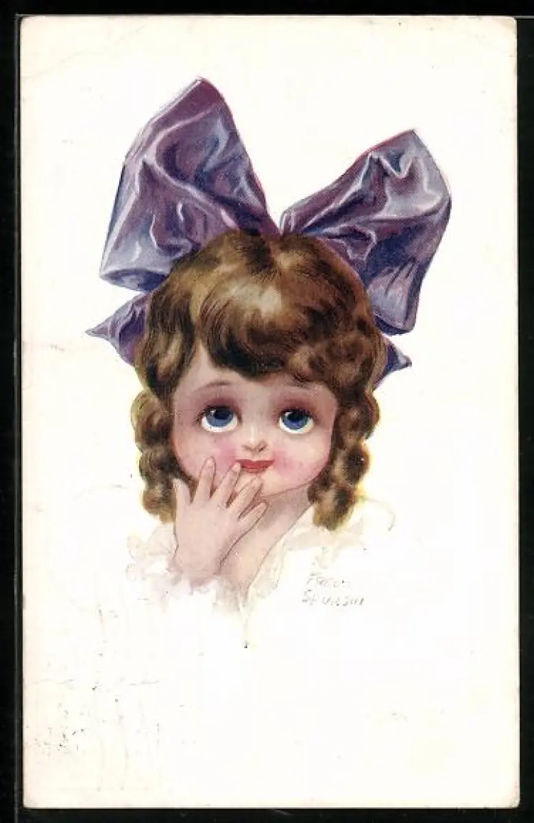 Künstler-AK Fred Spurgin: Kleines Mädchen mit violetter Schleife im Haar