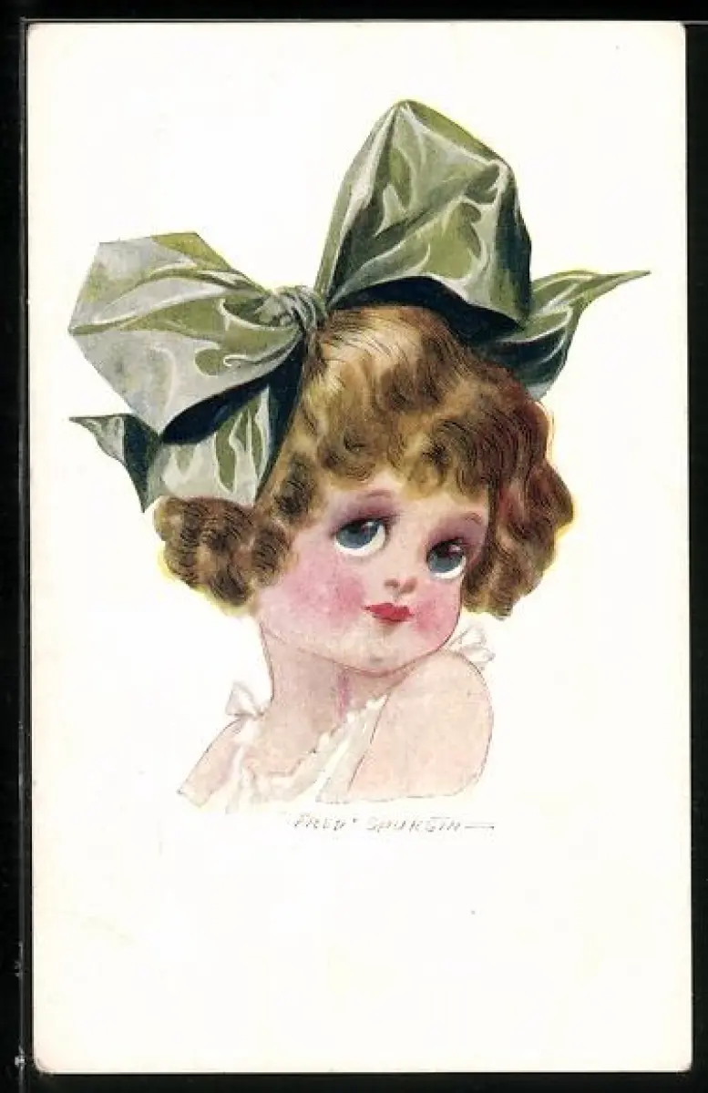 Künstler-AK Fred Spurgin: Mädchen mit grüner Schleife im Haar