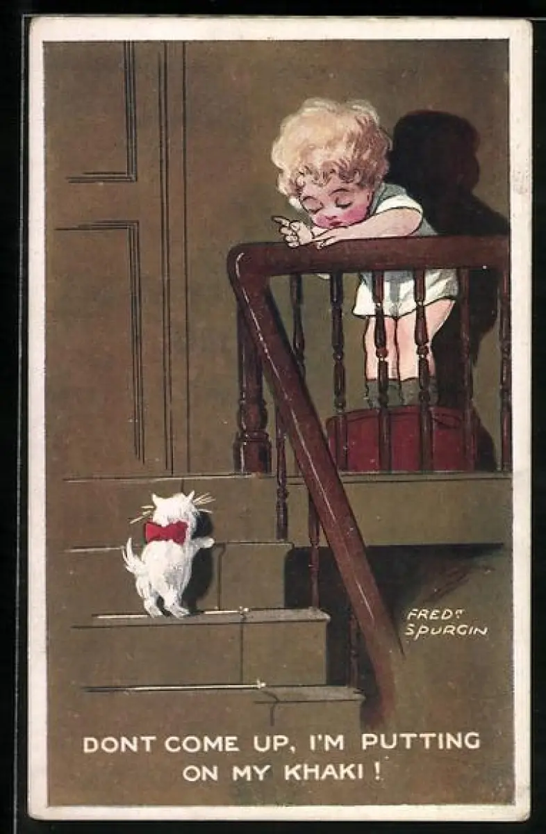 Künstler-AK Fred Spurgin: Mädchen und Kätzchen auf der Treppe
