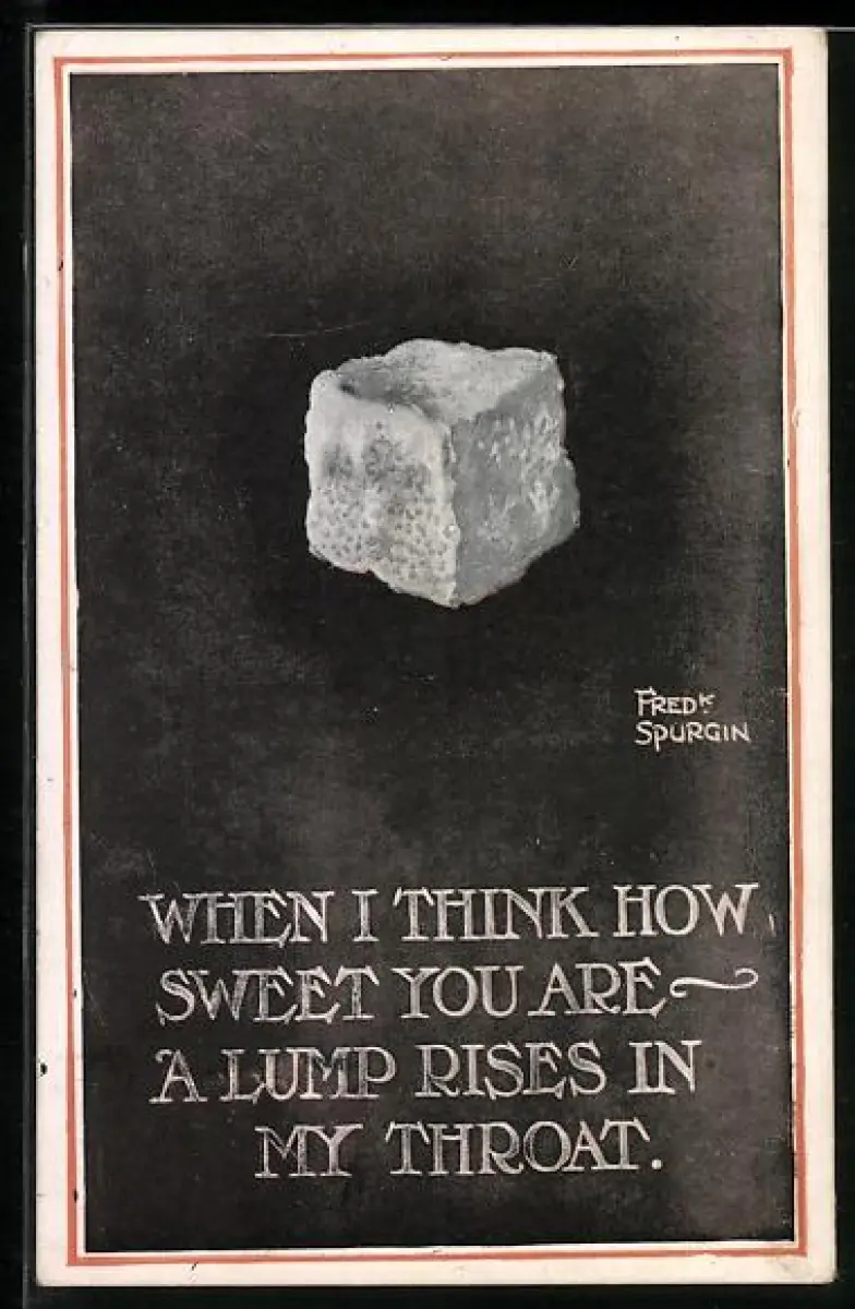 Künstler-AK Fred Spurgin: Zuckerwürfel mit Spruch, When I think how sweet you are...