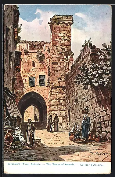 Künstler-AK Friedrich Perlberg: Antochia-Turm zu Jerusalem