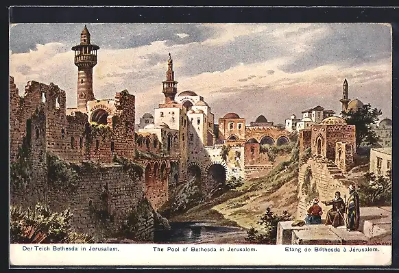 Künstler-AK Friedrich Perlberg: der Teich Bethesda in Jerusalem
