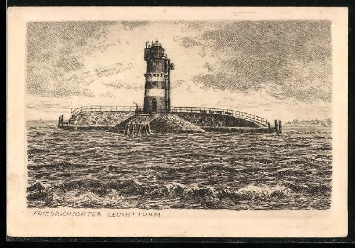 Künstler-AK Friedrichsort, Leuchtturm vom Wasser gesehen