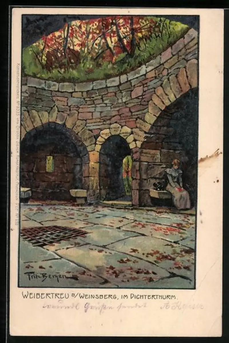 Künstler-AK Fritz Bergen: Weinsberg, Burg Weibertreu, im Dichterthurm