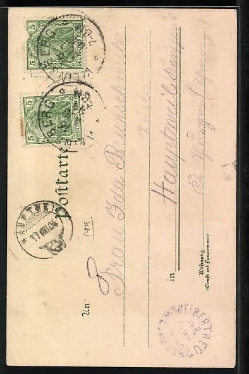 gelaufen 1904, Eckknicke re. unten, guter Zustand