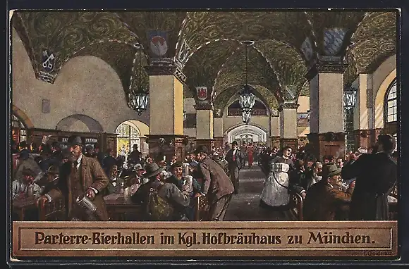 Künstler-AK Fritz Quidenus: Parterre-Bierhallen im Königlichen Hofbräuhaus zu München