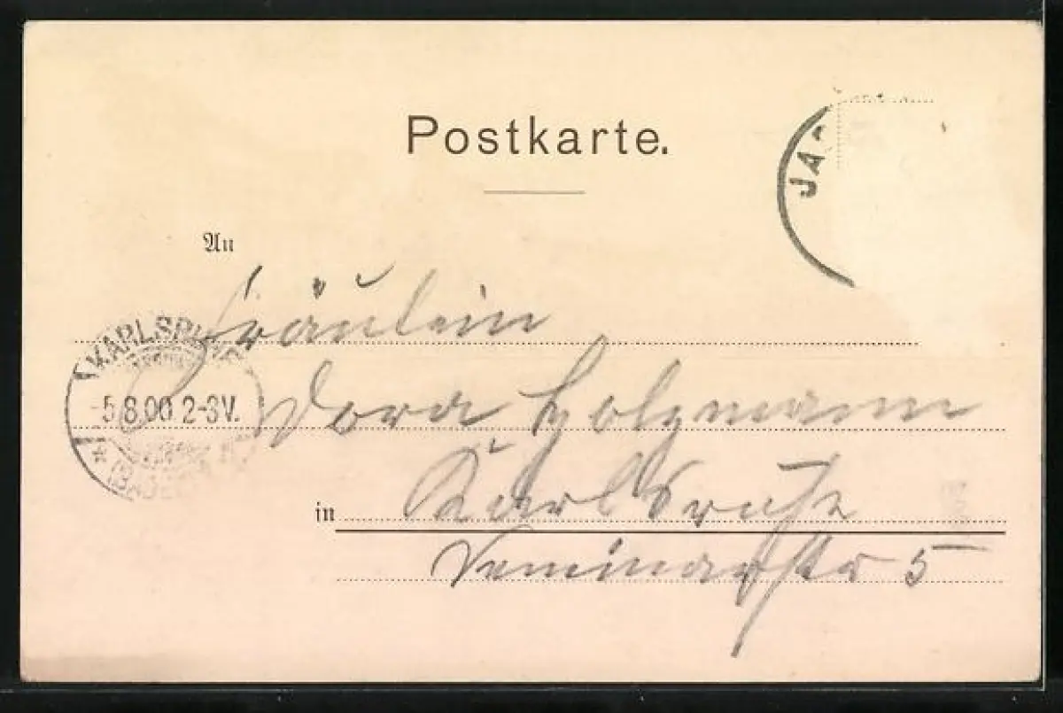 alte Ansichtskarte, gelaufen 1900, Briefmarke entfernt, guter Zustand