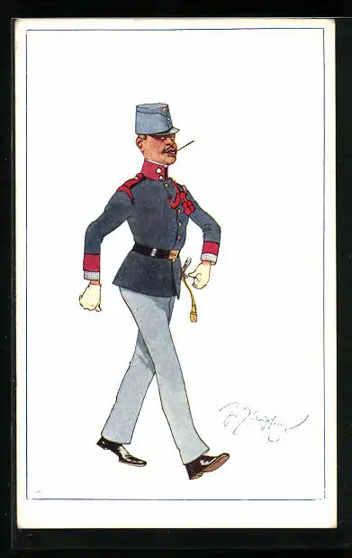 Künstler-AK Fritz Schönpflug: Soldat marschiert stolz in seiner Uniform
