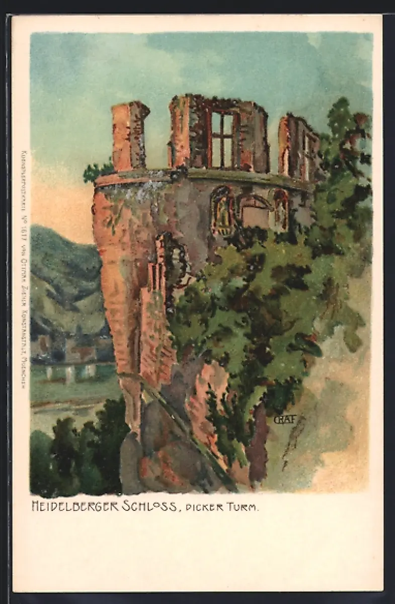 Künstler-AK G. Graf: Heidelberger Schloss, Dicker Turm