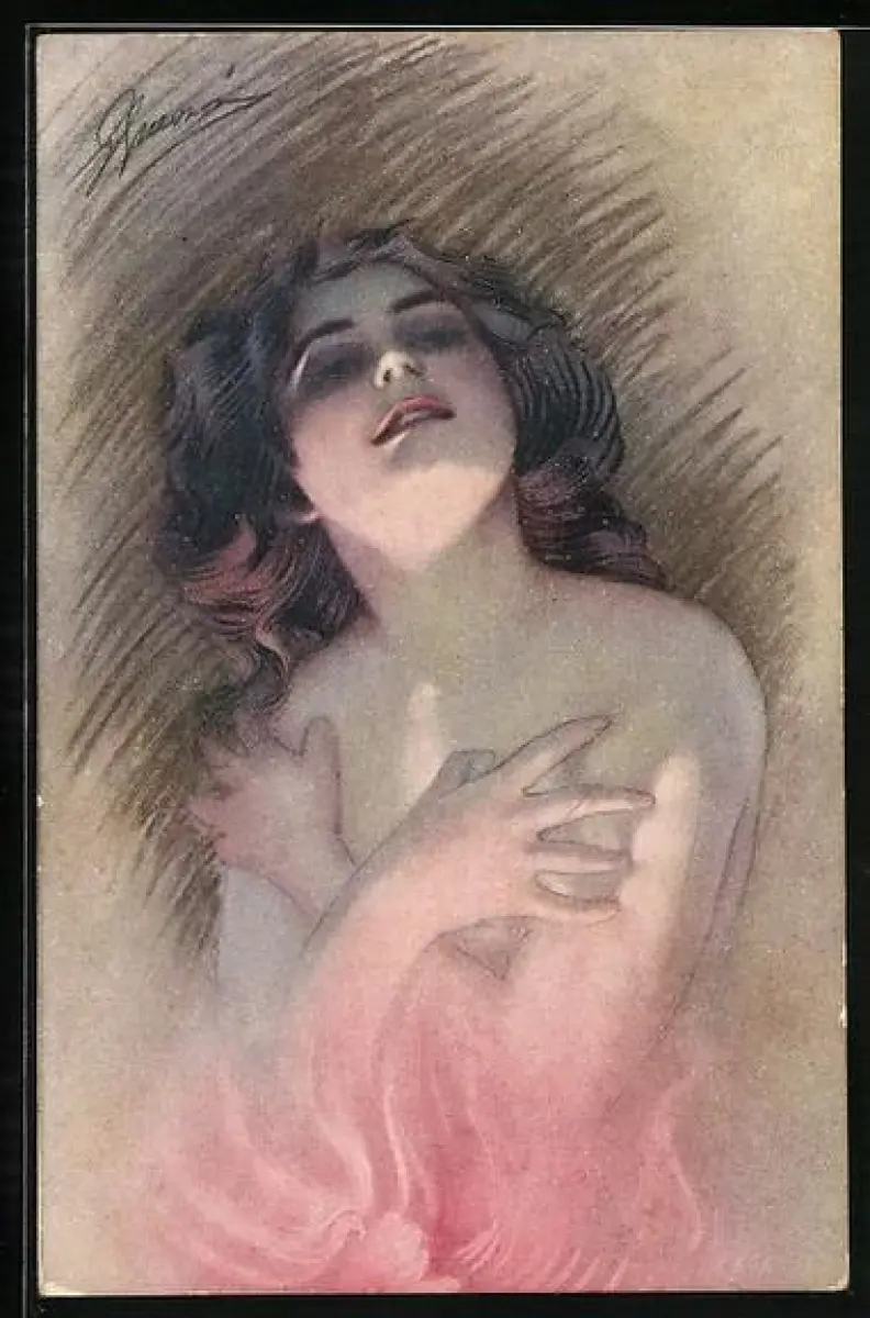 Künstler-AK G. Guerzoni: La Fiamma, nackte Frau bedeckt Busen mit Händen und schaut nach oben