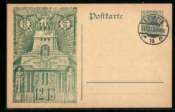Künstler-AK Ganzsache PP27 C 212 /02: Leipzig, Völkerschlachtdenkmal