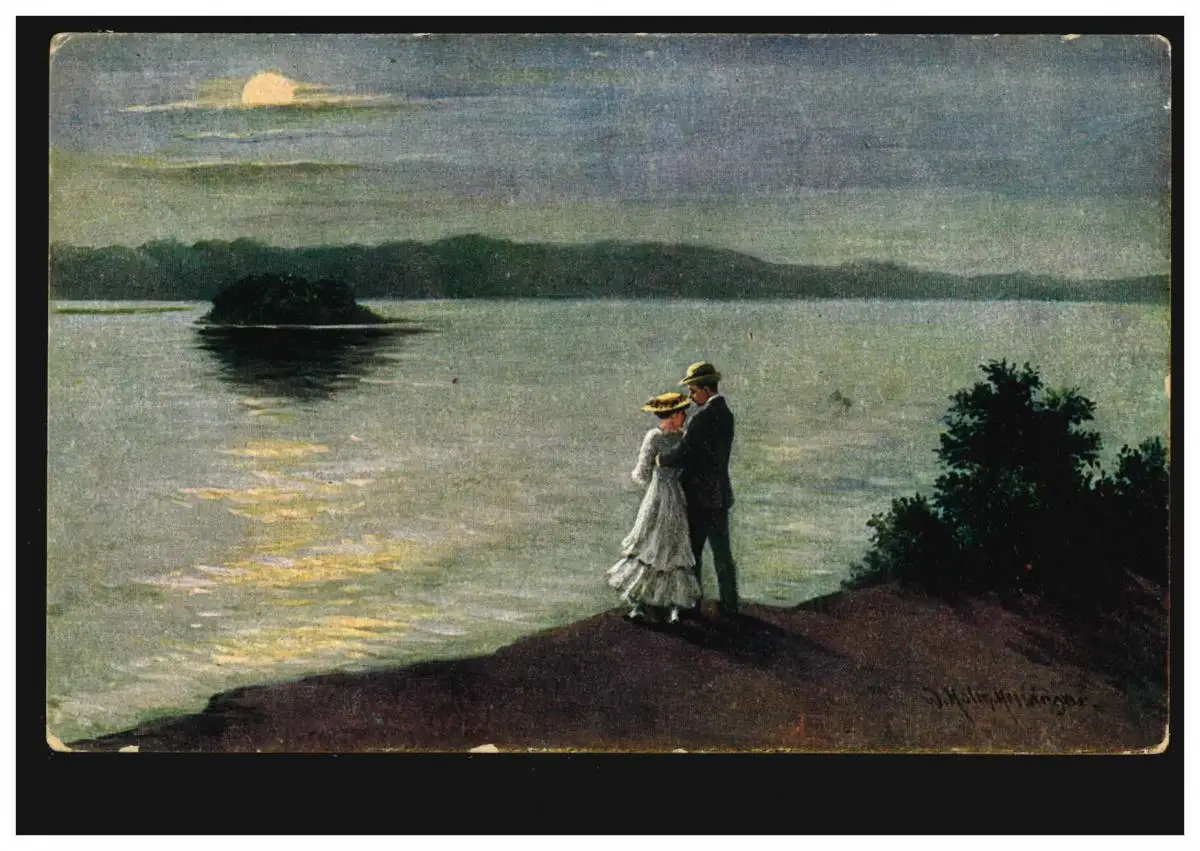 Künstler-AK Gemälde: Im Mondenschein, Verlag WS+SB, Feldpost WIEN 23.12.1917