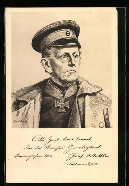 Künstler-AK General Moltke in Uniform, Ganzsache Bayern