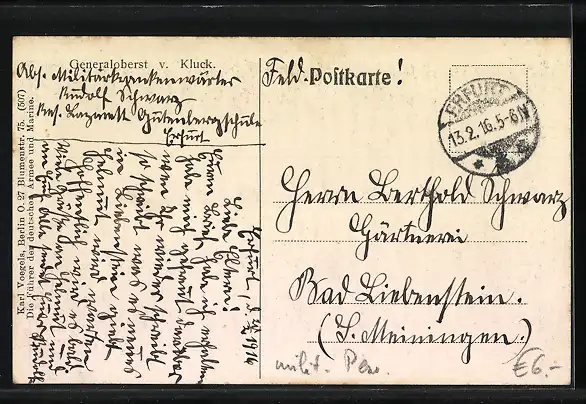 alte Ansichtskarte, gelaufen 1916, guter Zustand