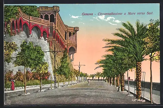 Künstler-AK Genova, Circonvallazione a Mare verso Sud
