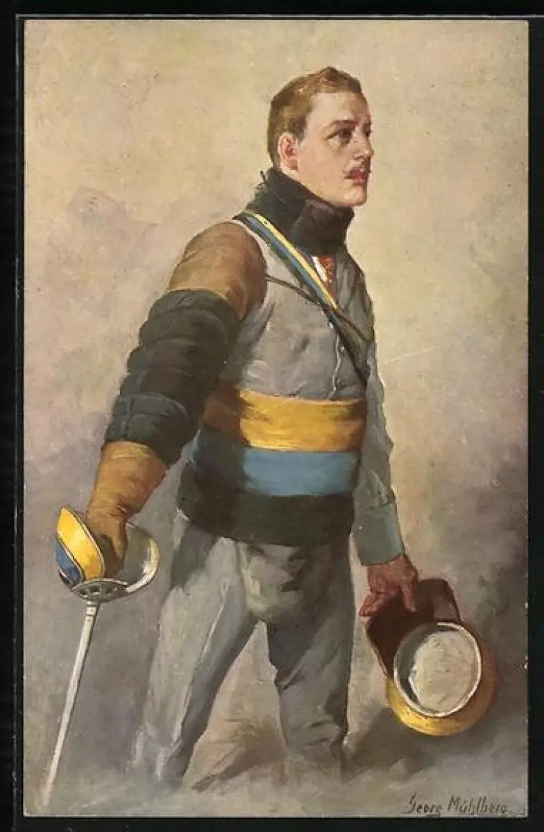 Künstler-AK Georg Mühlberg: Deutscher Student in Fechtkleidung