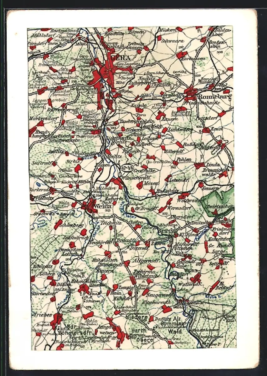 Künstler-AK Gera, Landkarte mit Weida, Ronneburg und Sirbis