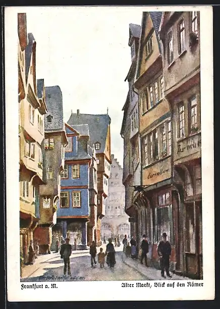 Künstler-AK Gg. Wüst: Alt-Frankfurt, Alter Markt, Blick auf den Römer