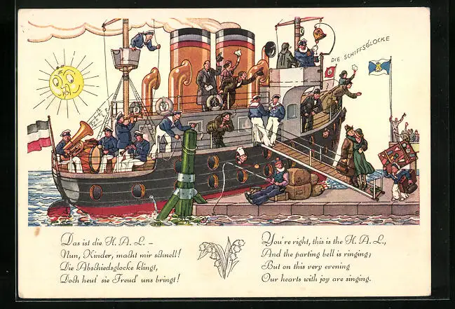 Künstler-AK Glockenabend an Bord eines Dampfers der H.-A.-Linie,