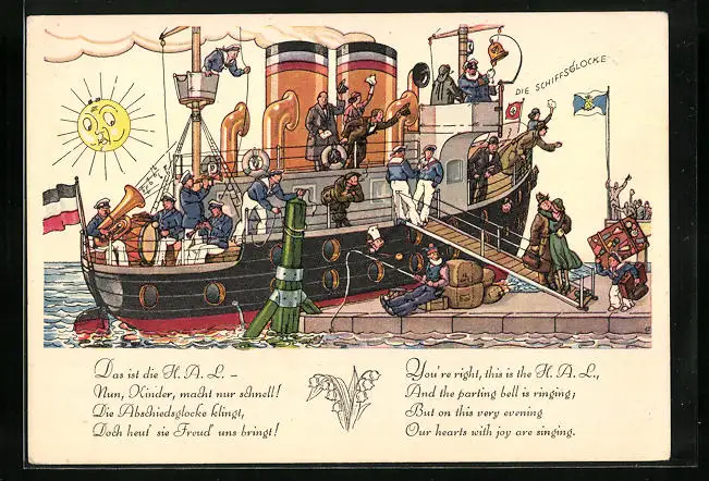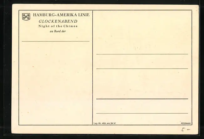 Künstler-AK Glockenabend an Bord eines Dampfers der H.-A.-Linie,