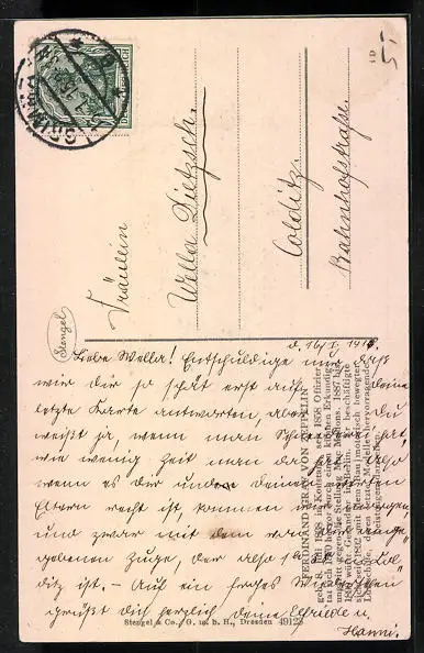 alte Ansichtskarte, gelaufen 1915, Stempelspur, guter Zustand
