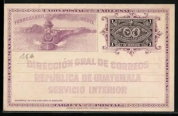 Künstler-AK Guatemala, Ferrocaril Norte, Direccion Gral de Correos, Servicio Interior