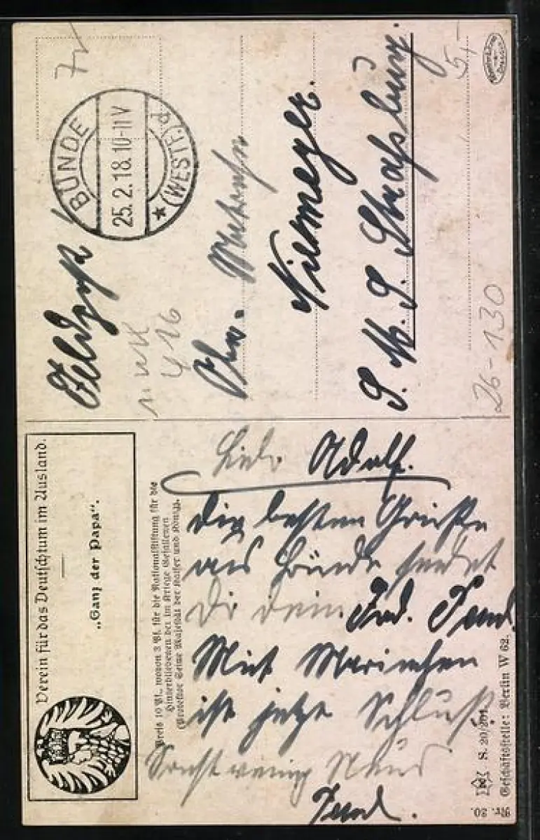 alte Ansichtskarte, gelaufen 1918 als Feldpost, Eckknick links unten, guter Zustand