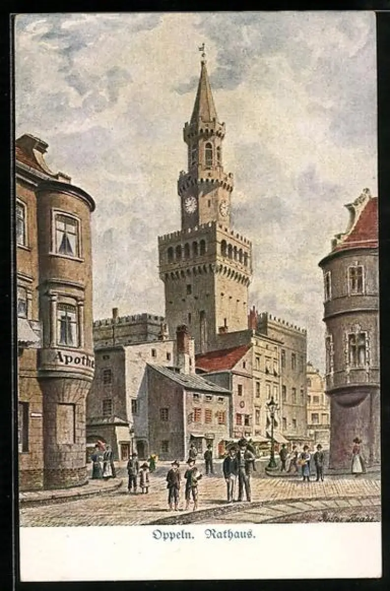 Künstler-AK Gustav Raabe: Oppeln, Rathaus