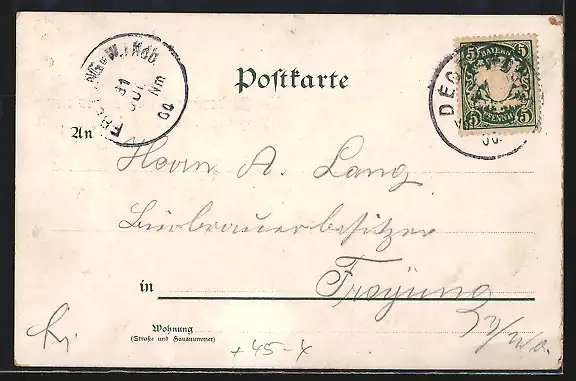 alte Ansichtskarte, gelaufen 1900, Eckknicke li., Abriebspur li. unten, guter Zustand