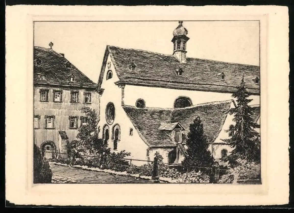 Künstler-AK H. Landgrebe: Eltville, Kloster Eberbach, Kirche und Abtsbau